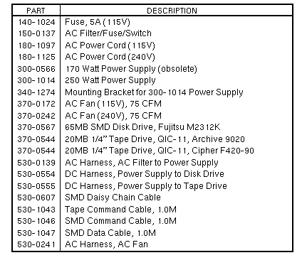 Volume II: Parts Breakdown - OptionD84 [65MB Disk] D84TC [65MB Disk, 20MB Tape] D84EX [65MB Disk Expansion] TC [20MB Tape] Rack Mountable Disk and Tape Subsystem | ||||||||||||