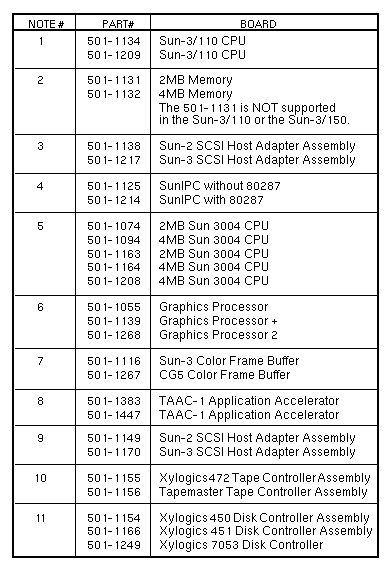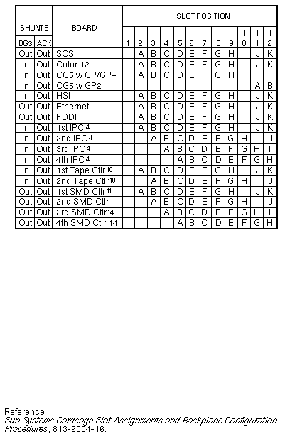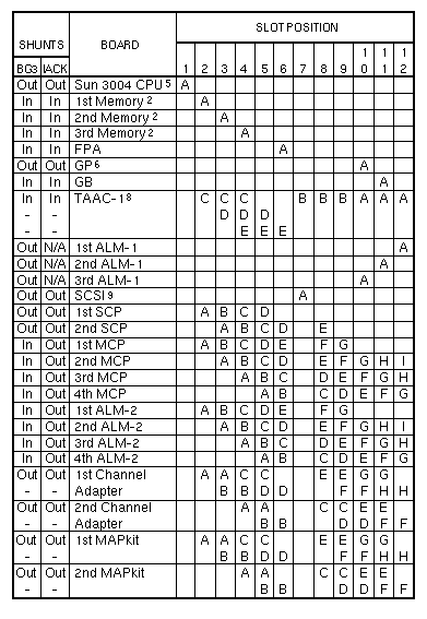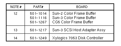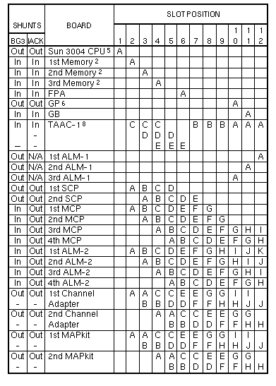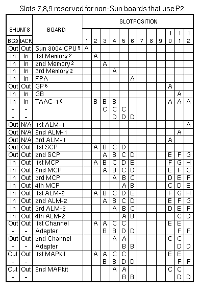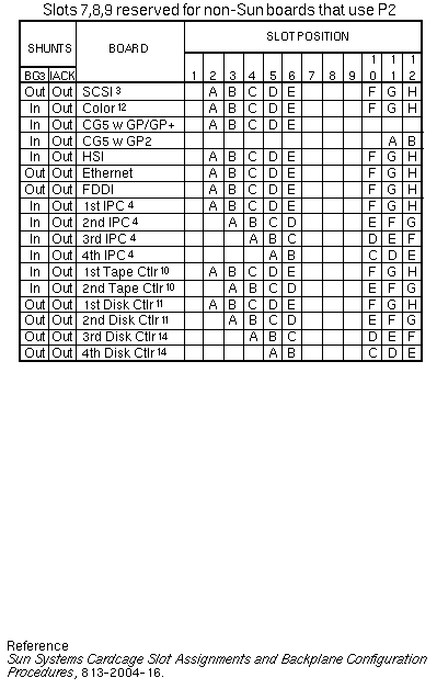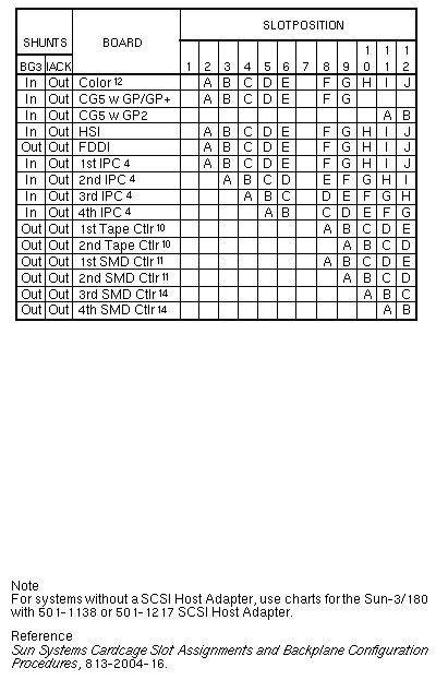 Volume I: Slot AssignmentSun-3/180with 501-1167 SCSI Host AdapterFootnotes Sun-3/180with 501-1138 or 501-1217 SCSI Host Adapter Sun-3/180with 501-1138 or 501-1217 SCSI Host AdapterSlots 7, 8, 9 reserved for non-Sun boards that use P2 Sun-3/110/140/150/160/180 | ||||||||||||