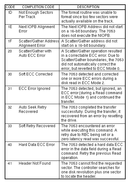 Completion Code Descriptions