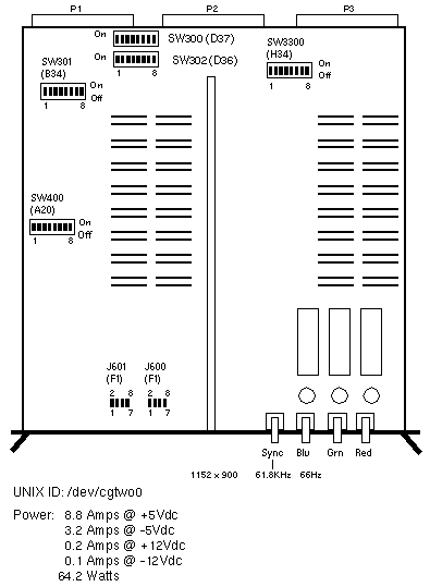 Volume I: Video/GraphicsCG5 Color Frame BufferSun-3/150/160/180/260/280/460/470/480Sun-4/110/150/260/280/310/330/350/360 Sun-4/370/380/380/470/490 501-1267 501-1267 Switch Settings