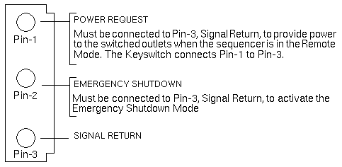 AC output of the Switched 1 and Switched 2 outlets is enabled when the breaker is ON and the Power Request is connected to Signal Return on the Remote I/O Connectors. |