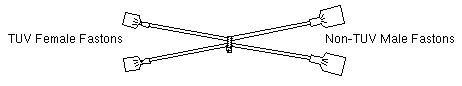A non-TUV female faston does not attach to a TUV male faston. Use adapter harness 811-9015-01. Last updated: December 2, 1996 | ||||||||||||||||||||||||||||||||||||||||||