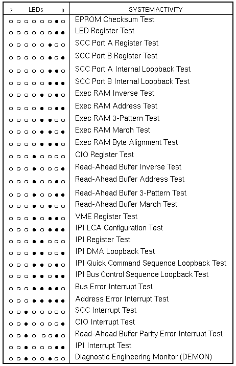 ISP-80 Disk ControllerSelf-Test Error CodesLED 7 lights to indicate a failed self-test Diagnostic Engineering MonitorThe Diagnostic Engineering Monitor (DEMON) is entered when the Diag/Norm switch is in the Diag position.