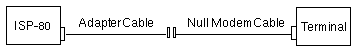 Self-test output is monitored by connecting the ISP-80 controller to a terminal set to 9600 baud, 8 data bits, no parity, and 1 stop bit. The ISP-80 Controller serial port is a 25-pin, dual in-line, header-type connector. Since Sun does not make a cable that connects the ISP-80 controller and a terminal, use an adapter cable and a null modem cable. Adapter CableExamples of Sun cables that can be used as adapter cables are: