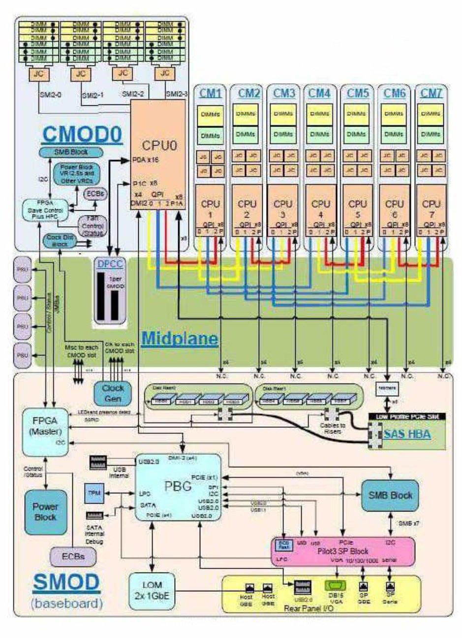 between the CMODs, the midplane, the SMOD, and attached and integrated components.